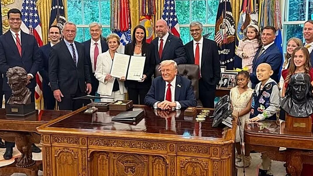 WWE Chief Content Officer Paul “Triple H” Levesque and former WWE executive Stephanie McMahon were in attendance for the signing, which took place at the White House in Washington, D.C. In 2014, Triple H and Stephanie established Connor’s Cure, a campaign aimed at raising funds to support pediatric cancer research. In 2025, McMahon helped lead the charge to make the latest executive order.